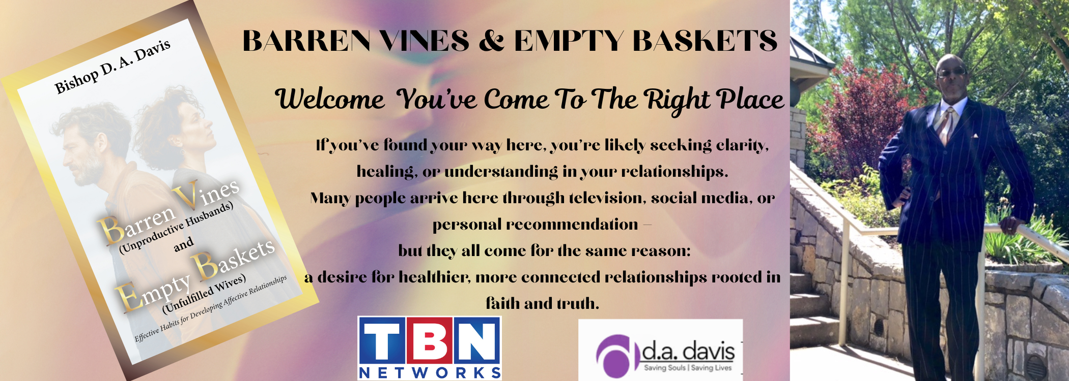 Bishop Davis weaves scripture, prayer, and everyday experiences to reveal why so many of us feel fruitless. With honesty, he shows how spiritual neglect and broken relationships, rob us of God’s presence. This video will give you insight and practical solutions based on Biblical foundations. Order the Book “Baren Vines & Empty Baskets” to get a Great Price!